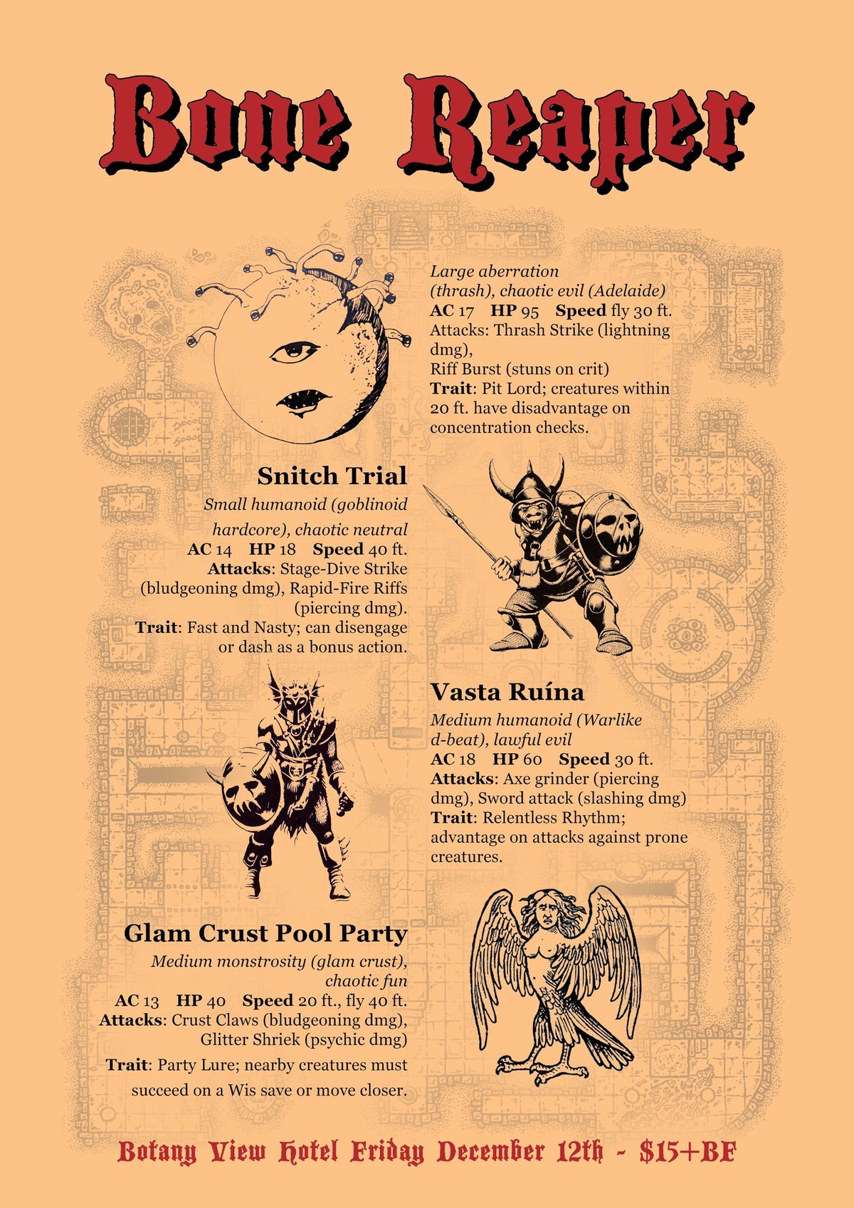 Bone Reaper (Adelaide), Snitch Trial, Vasta Ruína, Glam Crust Pool Party