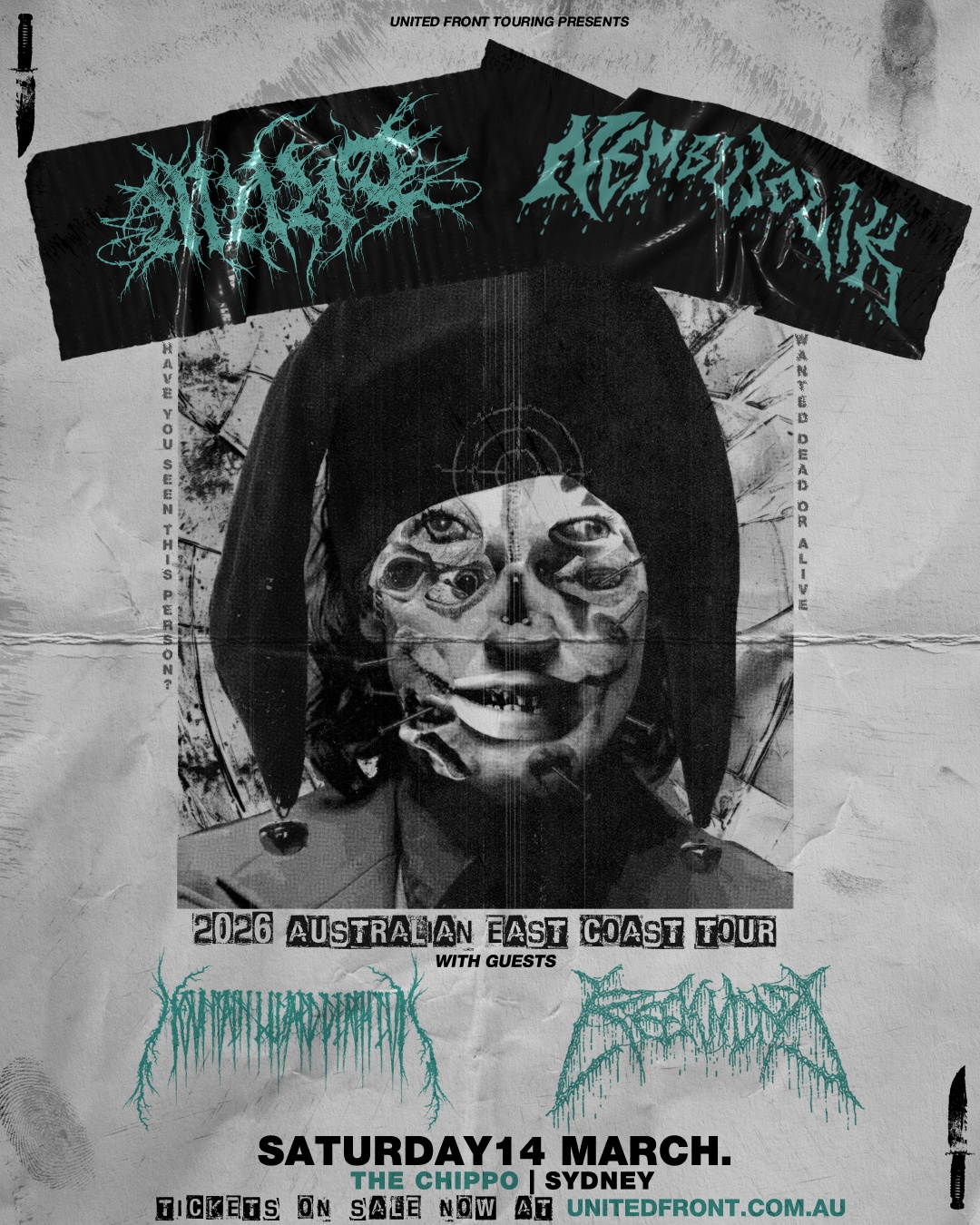 Australia is about to be hit with a double-dose of pure sonic punishment as two of the country’s most dangerous underground acts Munt and Nembutolik unite for a ruthless nine-date co headline tour set to shake the foundations of every city.