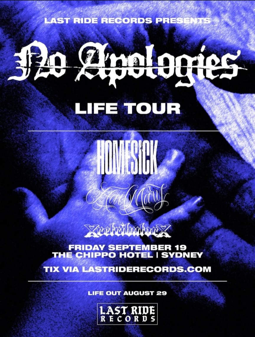Sydney’s hardcore titans, No Apologies, return with fervor and fire, unveiling their eagerly awaited second opus, "Life" — a visceral testament to the tumult, tenderness, and tenacity of the human spirit. Following their 2007 Australian hardcore landmark, "Survival", the band stands tall in career-defining form—a remarkable milestone for a group whose nearly two-decade legacy pulses with relentless energy.